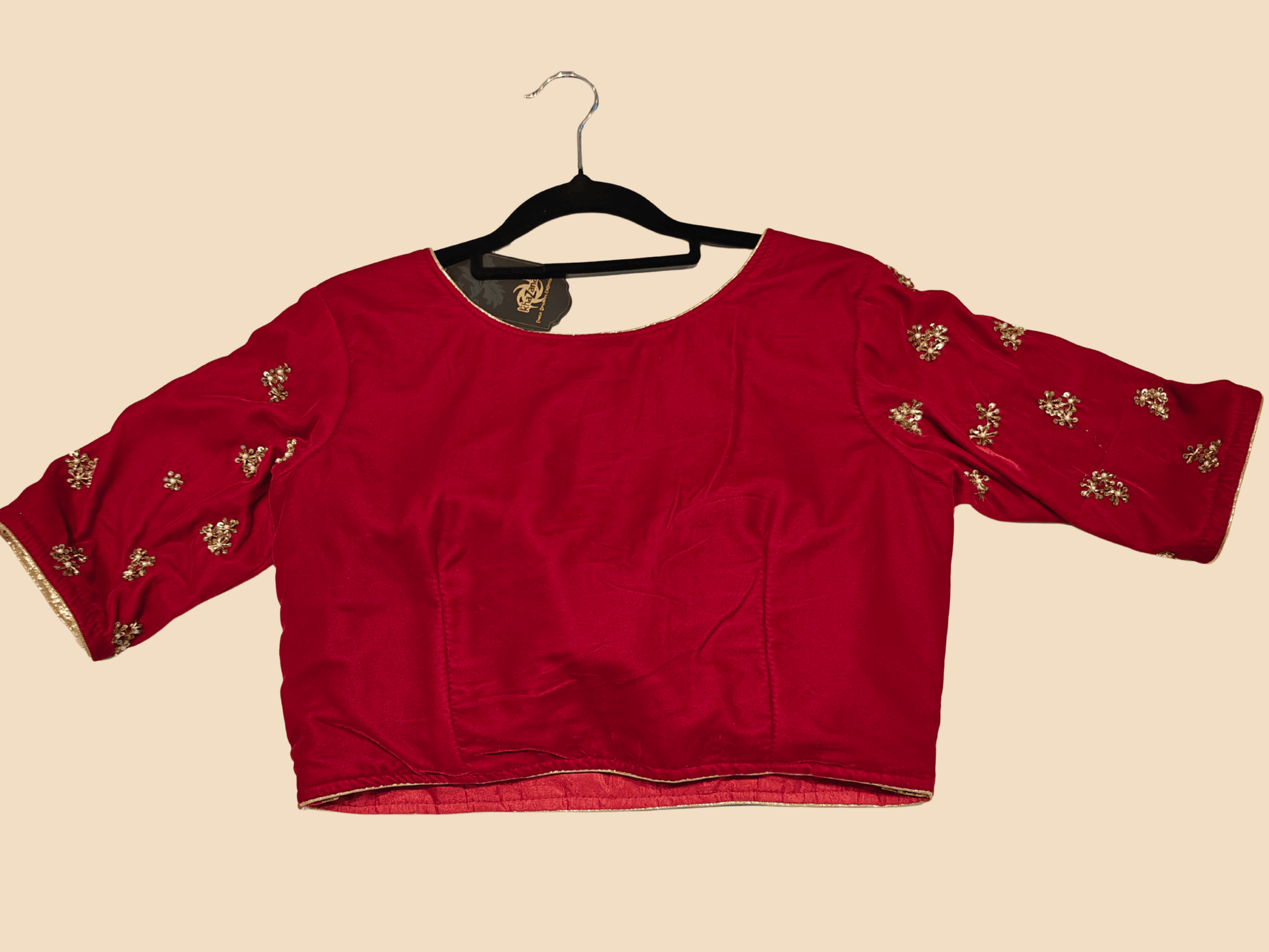 A statement in elegance and tradition. This blouse is richly embroidered with golden floral and leaf motifs, including a striking central bloom that anchors the design. The ornate detailing and shimmering embellishments make it perfect for bridal wear, festive occasions, or cultural celebrations where craftsmanship takes center stage.