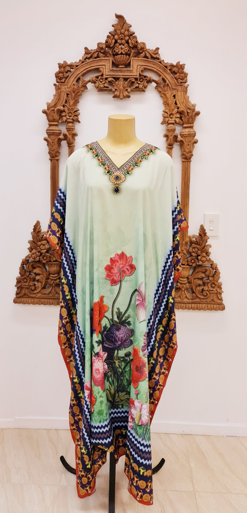 Flowy satin silk floor length kaftan, perfect for summer