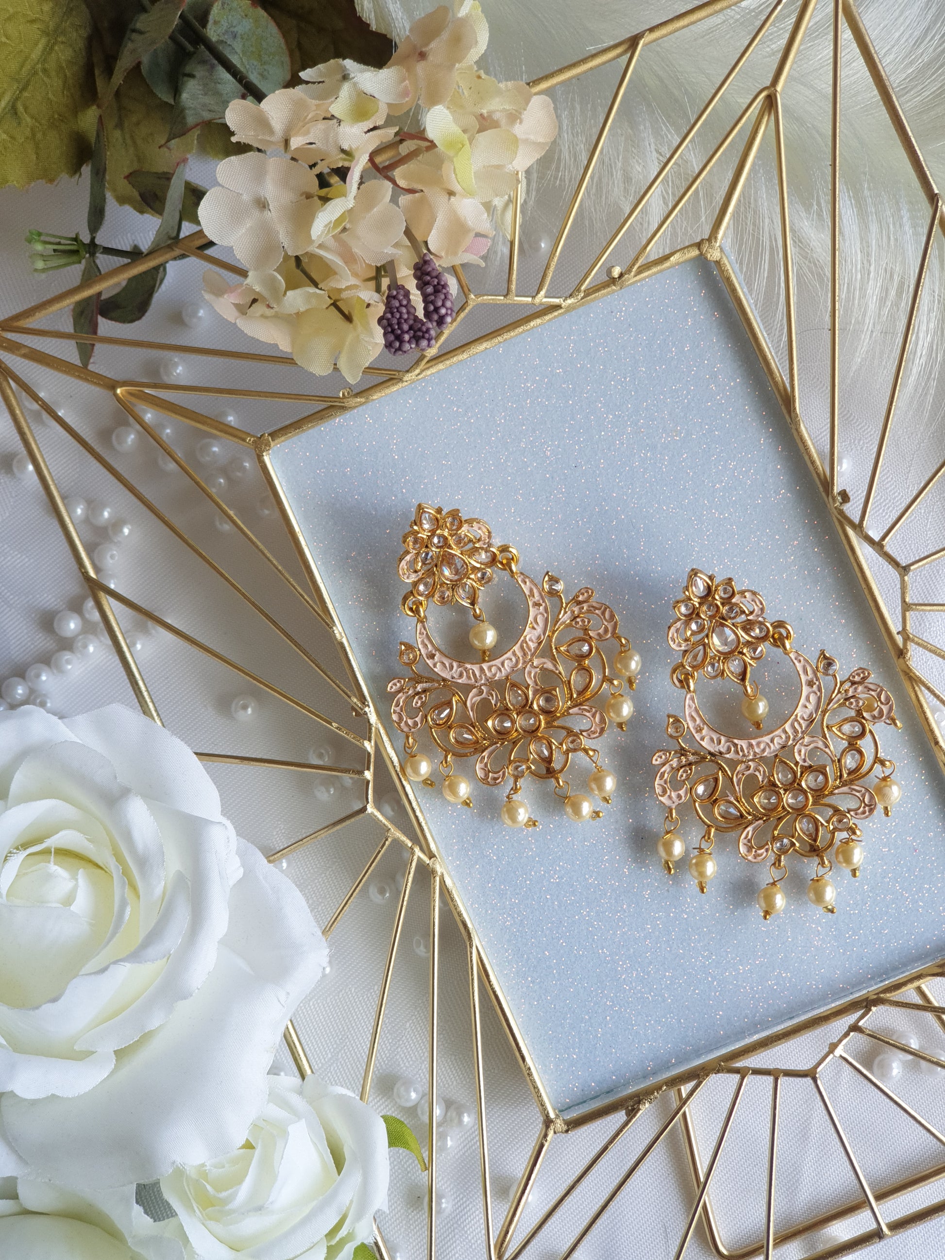 Peach painted Kundan earrings. Gorgeous staple piece. Available in deep blue, red, and grey.