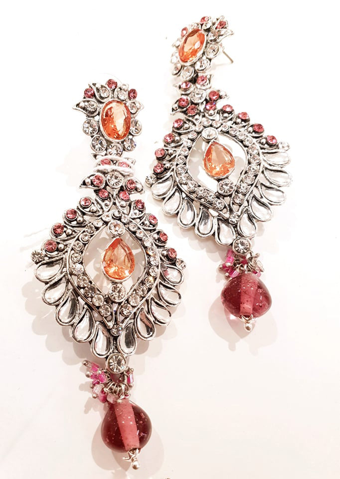 Peach & Silver Kundan Earrings