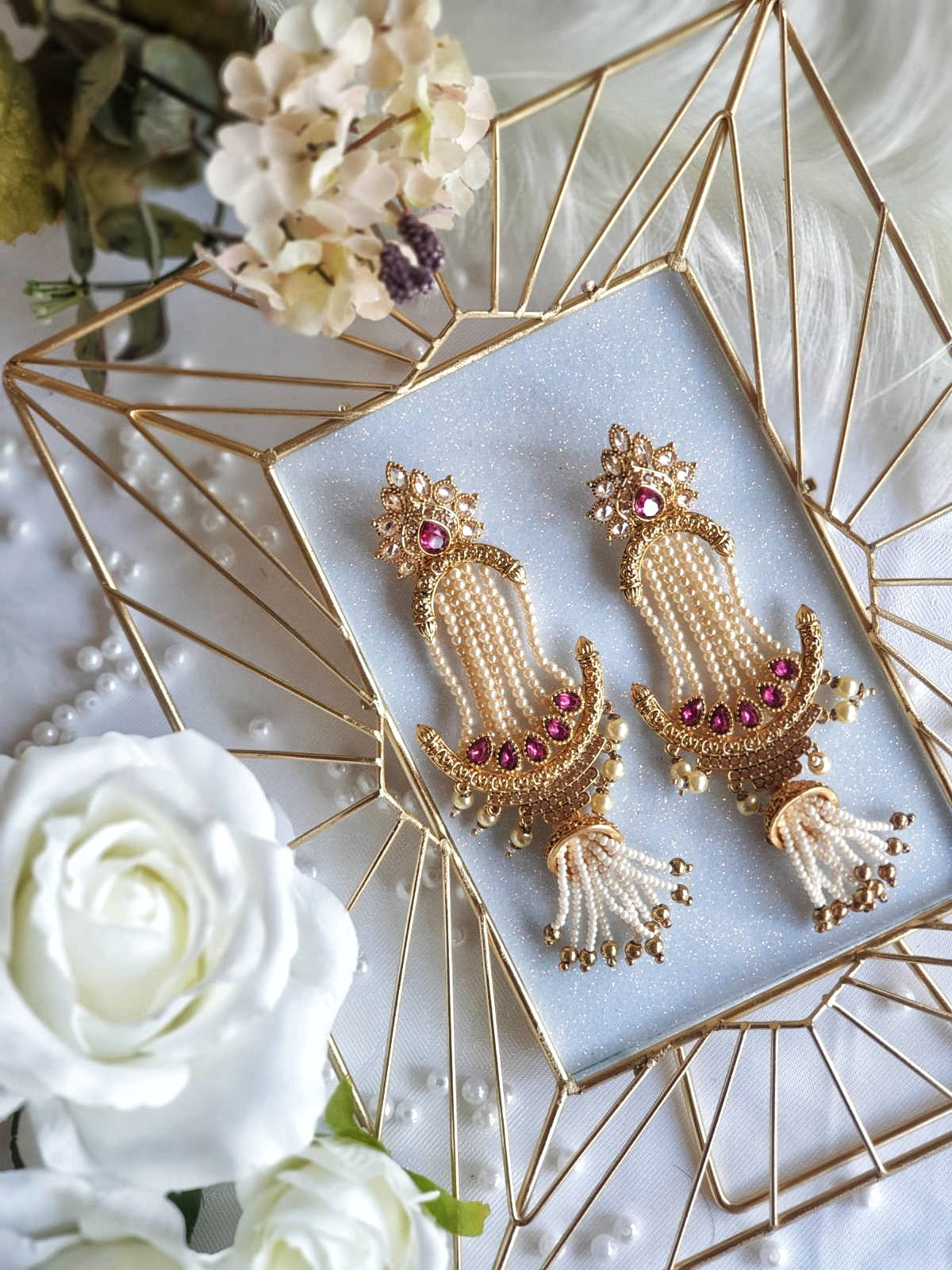 Pearl & Pink Chandelier Earrings - large statement earrings