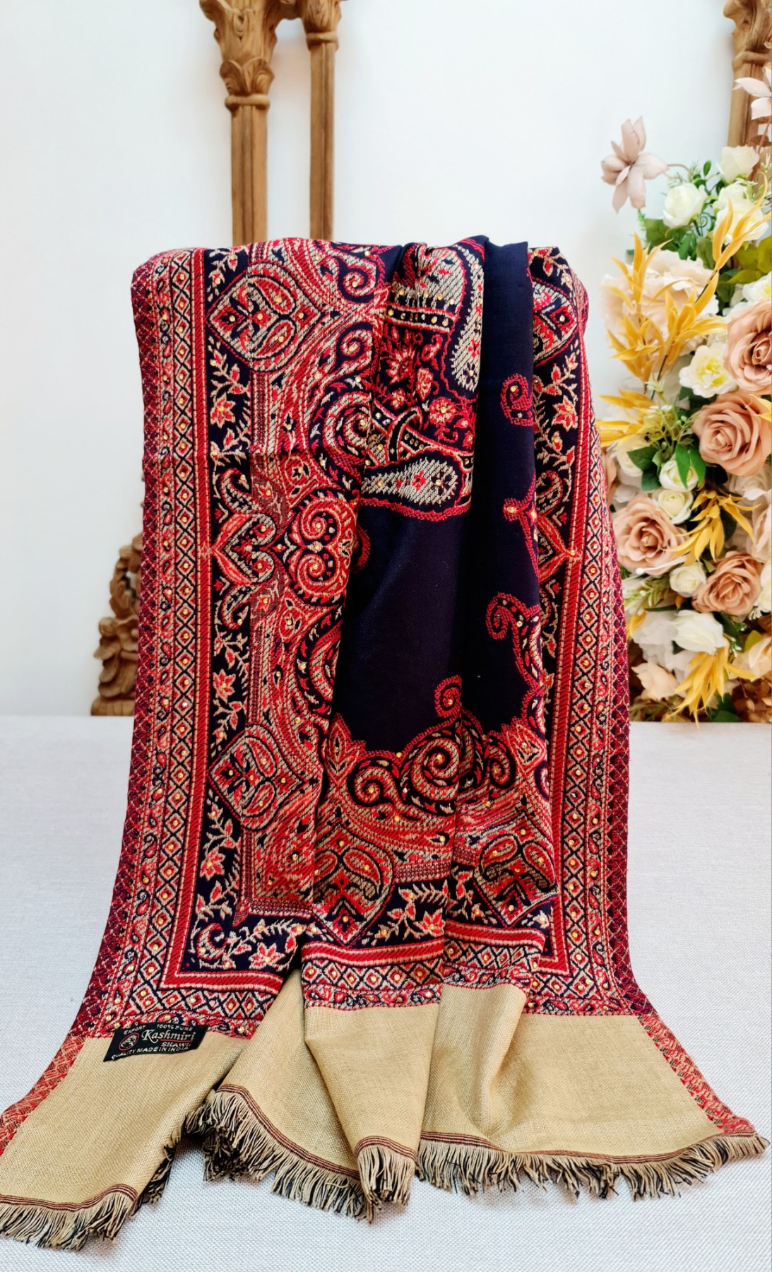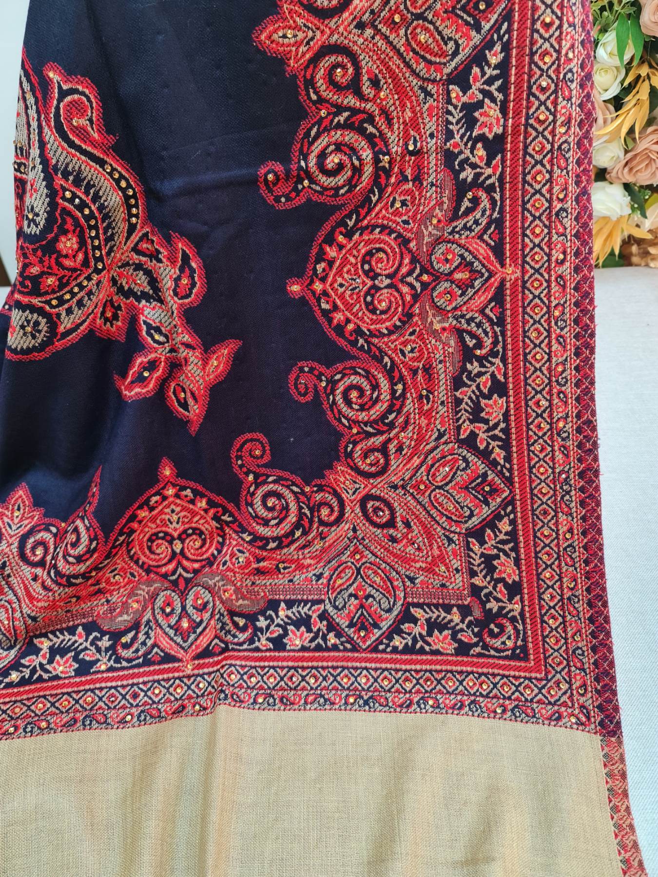 Navy & beige kashmiri shawl- wool blend